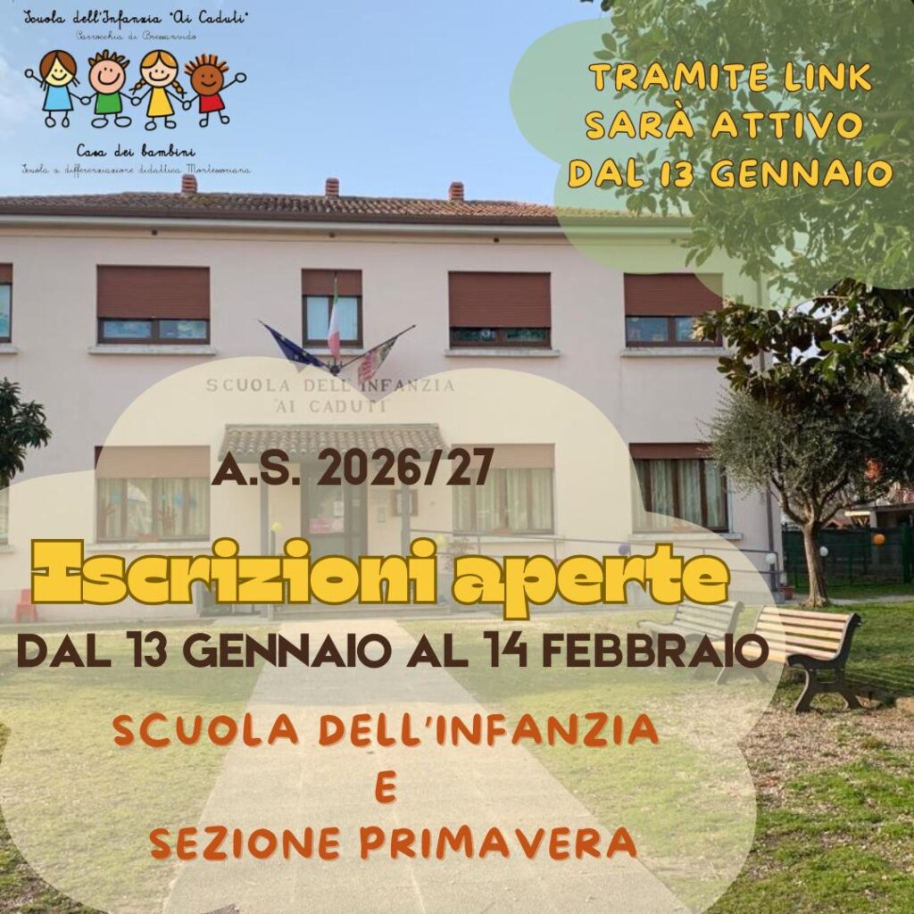 Potrete iscrivere i vostri figli alla Sezione Primavera o alla Scuola dell’Infanzia tramite link